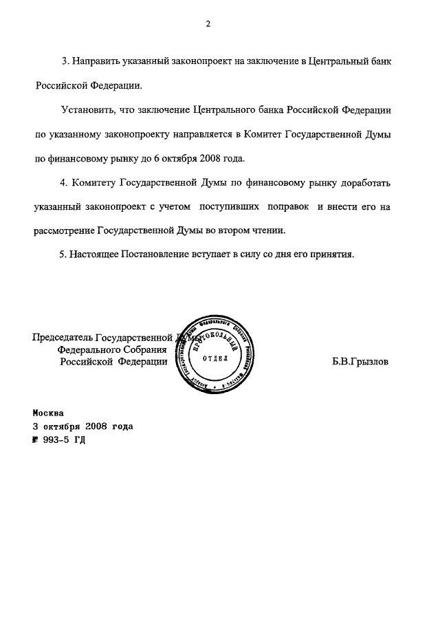 ПОСТАНОВЛЕНИЕ ГД ФС РФ от 03.10.2008 N 993-5 ГД