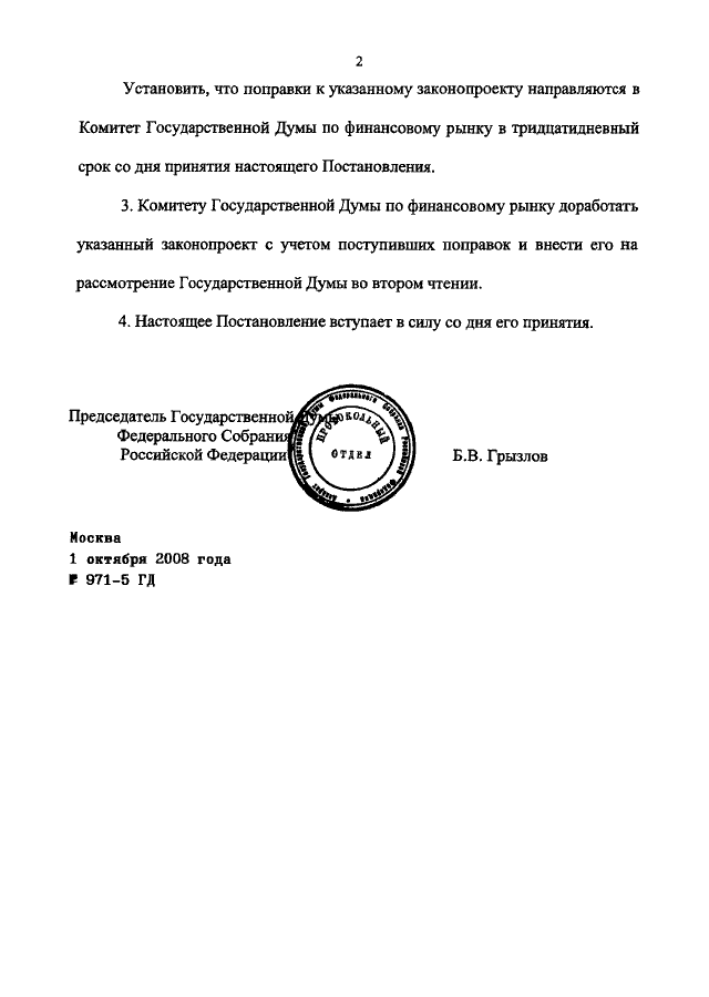 ПОСТАНОВЛЕНИЕ ГД ФС РФ от 01.10.2008 N 971-5 ГД