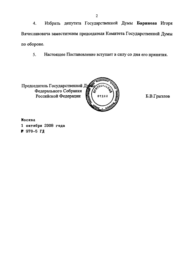 ПОСТАНОВЛЕНИЕ ГД ФС РФ от 01.10.2008 N 970-5 ГД