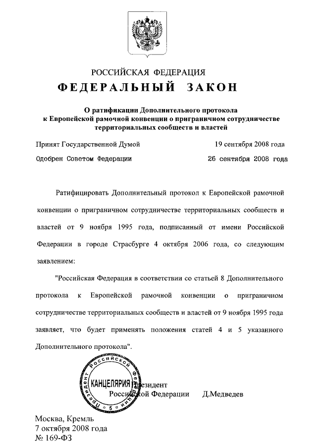 ФЕДЕРАЛЬНЫЙ ЗАКОН от 07.10.2008 N 169-ФЗ