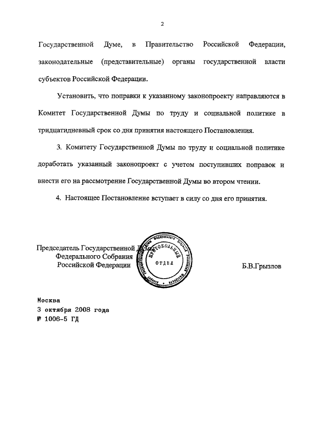 ПОСТАНОВЛЕНИЕ ГД ФС РФ от 03.10.2008 N 1006-5 ГД