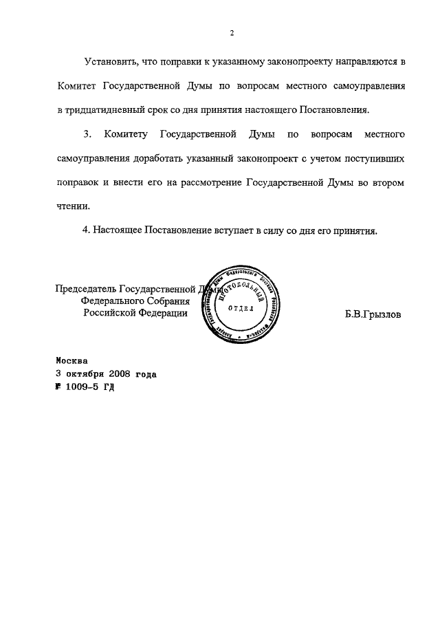ПОСТАНОВЛЕНИЕ ГД ФС РФ от 03.10.2008 N 1009-5 ГД