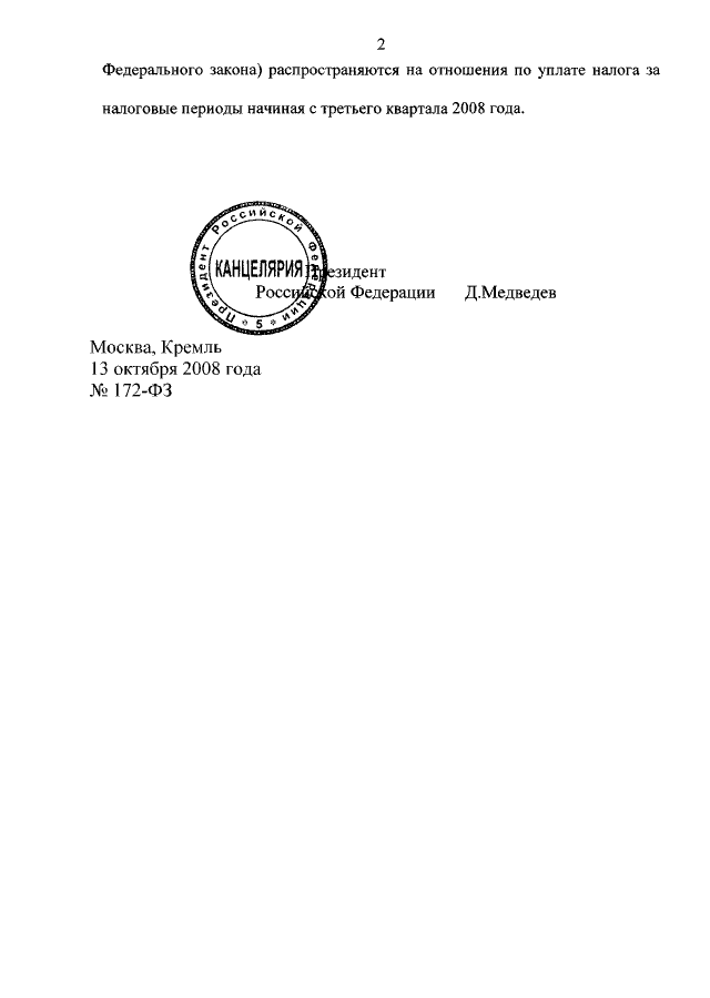 ФЕДЕРАЛЬНЫЙ ЗАКОН от 13.10.2008 N 172-ФЗ