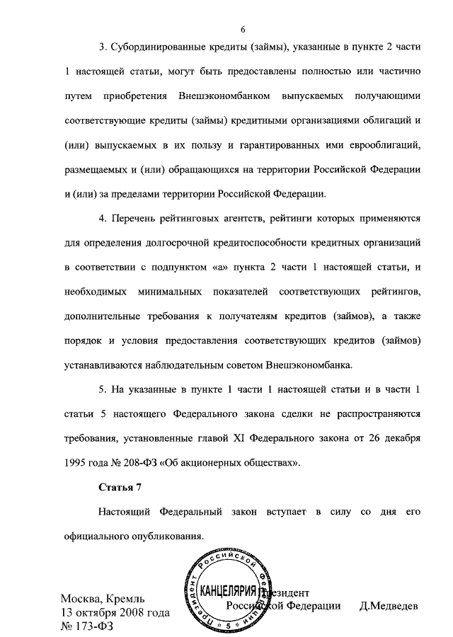 ФЕДЕРАЛЬНЫЙ ЗАКОН от 13.10.2008 N 173-ФЗ