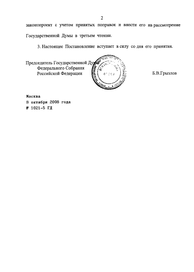 ПОСТАНОВЛЕНИЕ ГД ФС РФ от 08.10.2008 N 1021-5 ГД