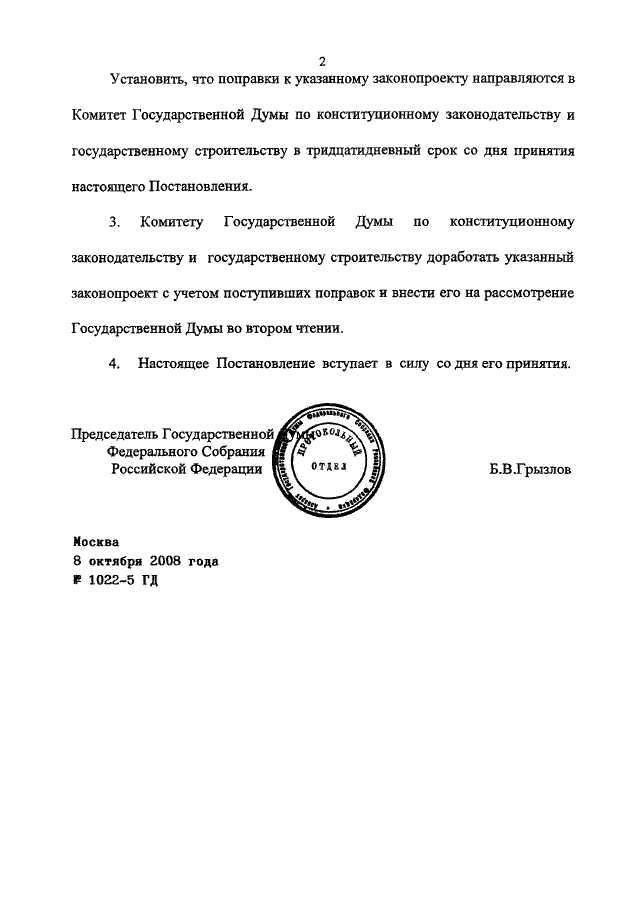ПОСТАНОВЛЕНИЕ ГД ФС РФ от 08.10.2008 N 1022-5 ГД