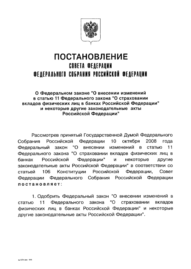 ПОСТАНОВЛЕНИЕ СФ ФС РФ от 13.10.2008 N 325-СФ