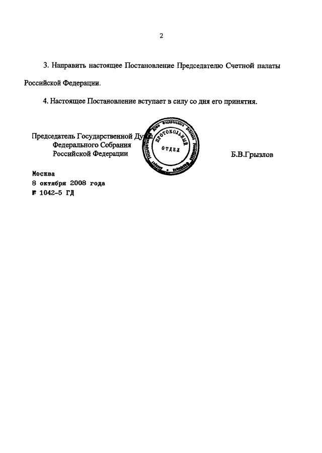 ПОСТАНОВЛЕНИЕ ГД ФС РФ от 08.10.2008 N 1042-5 ГД