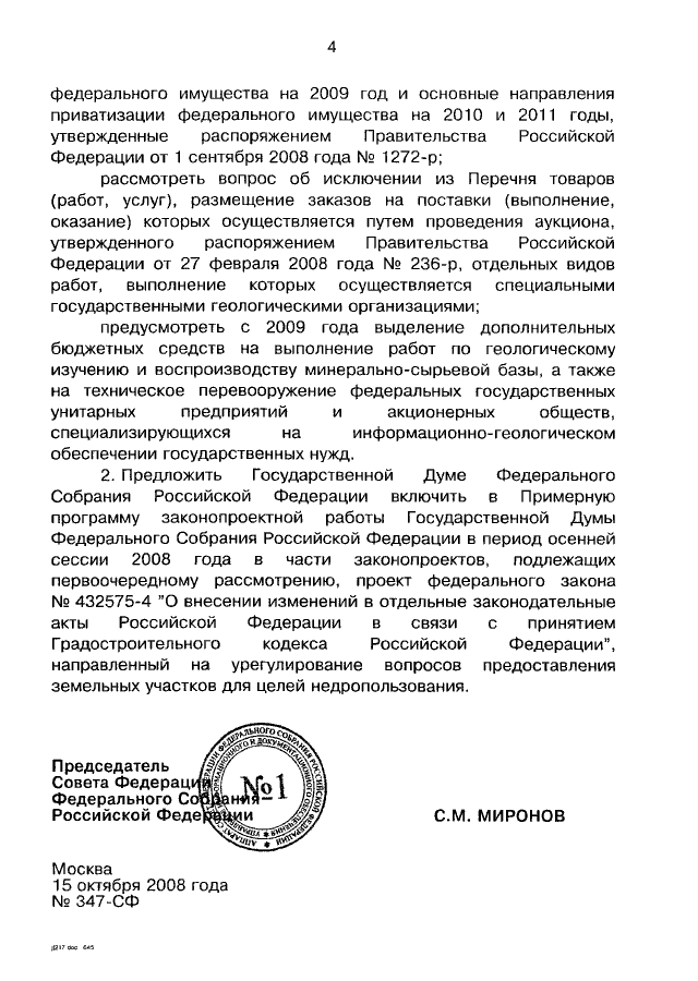 ПОСТАНОВЛЕНИЕ СФ ФС РФ от 15.10.2008 N 347-СФ