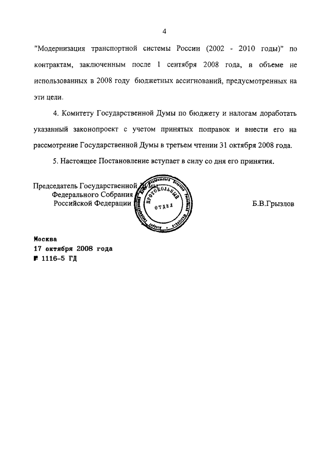 ПОСТАНОВЛЕНИЕ ГД ФС РФ от 17.10.2008 N 1116-5 ГД