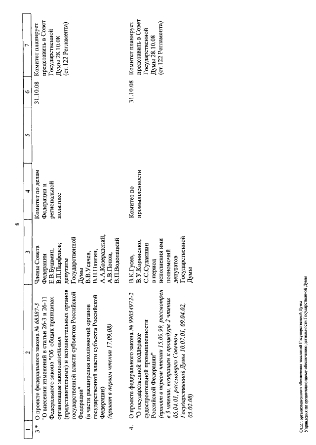 "О КАЛЕНДАРЕ РАССМОТРЕНИЯ ВОПРОСОВ ГОСУДАРСТВЕННОЙ ДУМОЙ С 29 ОКТЯБРЯ ПО 21 НОЯБРЯ 2008 ГОДА"