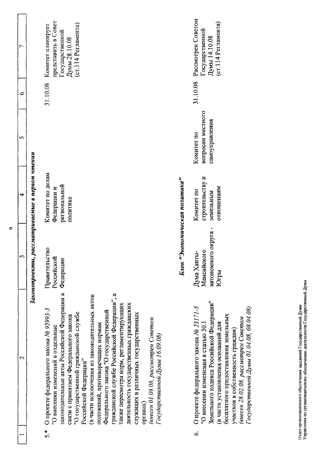 "О КАЛЕНДАРЕ РАССМОТРЕНИЯ ВОПРОСОВ ГОСУДАРСТВЕННОЙ ДУМОЙ С 29 ОКТЯБРЯ ПО 21 НОЯБРЯ 2008 ГОДА"