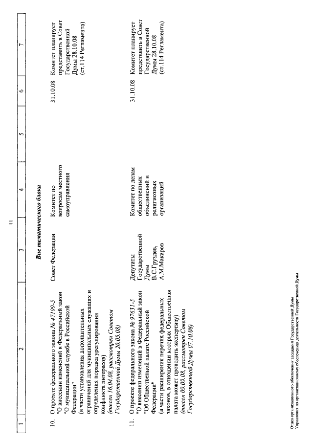 "О КАЛЕНДАРЕ РАССМОТРЕНИЯ ВОПРОСОВ ГОСУДАРСТВЕННОЙ ДУМОЙ С 29 ОКТЯБРЯ ПО 21 НОЯБРЯ 2008 ГОДА"