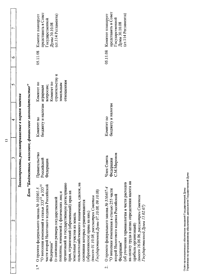 "О КАЛЕНДАРЕ РАССМОТРЕНИЯ ВОПРОСОВ ГОСУДАРСТВЕННОЙ ДУМОЙ С 29 ОКТЯБРЯ ПО 21 НОЯБРЯ 2008 ГОДА"