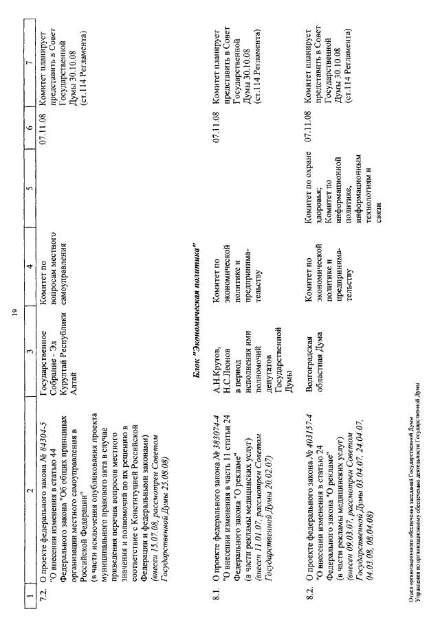 "О КАЛЕНДАРЕ РАССМОТРЕНИЯ ВОПРОСОВ ГОСУДАРСТВЕННОЙ ДУМОЙ С 29 ОКТЯБРЯ ПО 21 НОЯБРЯ 2008 ГОДА"