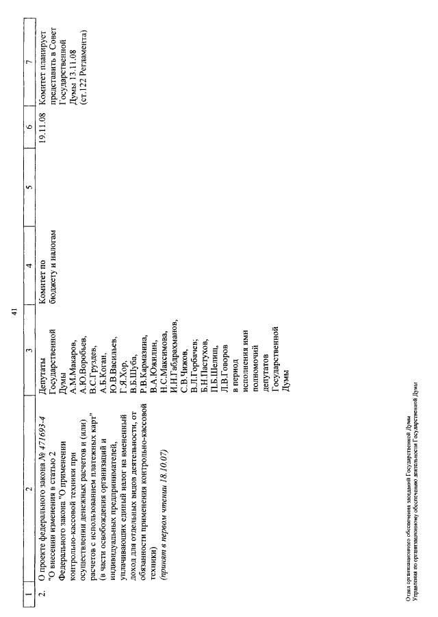 "О КАЛЕНДАРЕ РАССМОТРЕНИЯ ВОПРОСОВ ГОСУДАРСТВЕННОЙ ДУМОЙ С 29 ОКТЯБРЯ ПО 21 НОЯБРЯ 2008 ГОДА"