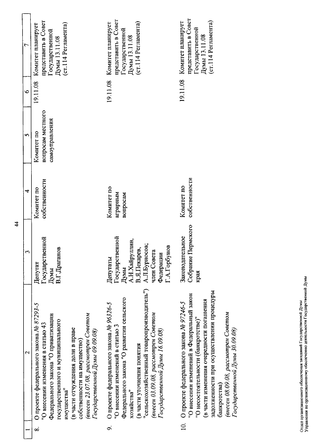 "О КАЛЕНДАРЕ РАССМОТРЕНИЯ ВОПРОСОВ ГОСУДАРСТВЕННОЙ ДУМОЙ С 29 ОКТЯБРЯ ПО 21 НОЯБРЯ 2008 ГОДА"