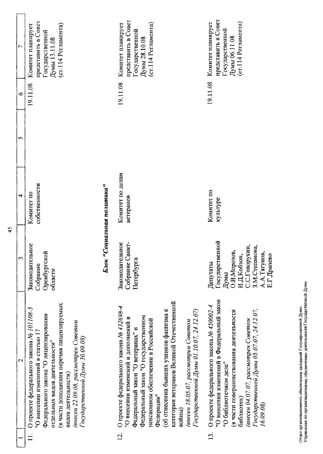 "О КАЛЕНДАРЕ РАССМОТРЕНИЯ ВОПРОСОВ ГОСУДАРСТВЕННОЙ ДУМОЙ С 29 ОКТЯБРЯ ПО 21 НОЯБРЯ 2008 ГОДА"