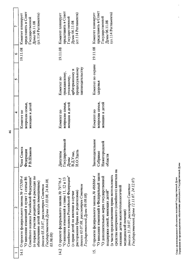 "О КАЛЕНДАРЕ РАССМОТРЕНИЯ ВОПРОСОВ ГОСУДАРСТВЕННОЙ ДУМОЙ С 29 ОКТЯБРЯ ПО 21 НОЯБРЯ 2008 ГОДА"