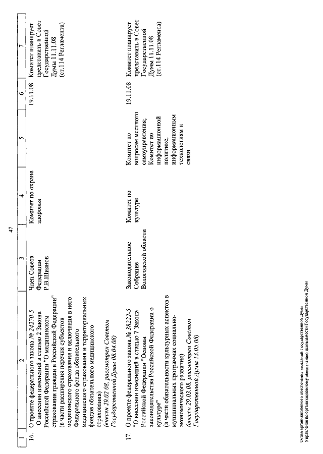 "О КАЛЕНДАРЕ РАССМОТРЕНИЯ ВОПРОСОВ ГОСУДАРСТВЕННОЙ ДУМОЙ С 29 ОКТЯБРЯ ПО 21 НОЯБРЯ 2008 ГОДА"