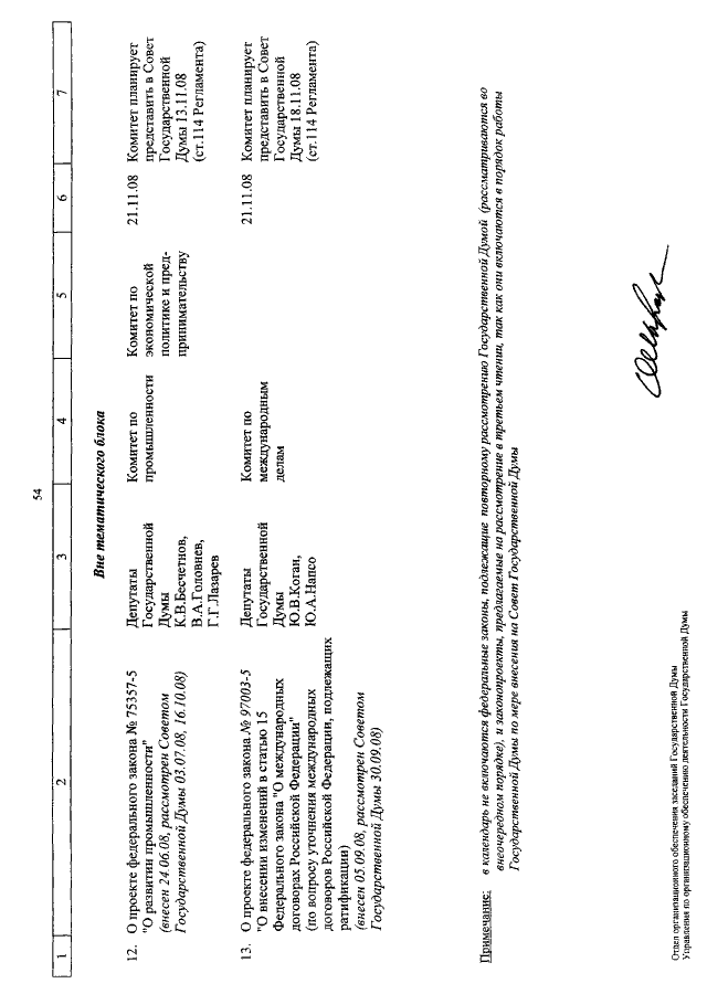 "О КАЛЕНДАРЕ РАССМОТРЕНИЯ ВОПРОСОВ ГОСУДАРСТВЕННОЙ ДУМОЙ С 29 ОКТЯБРЯ ПО 21 НОЯБРЯ 2008 ГОДА"