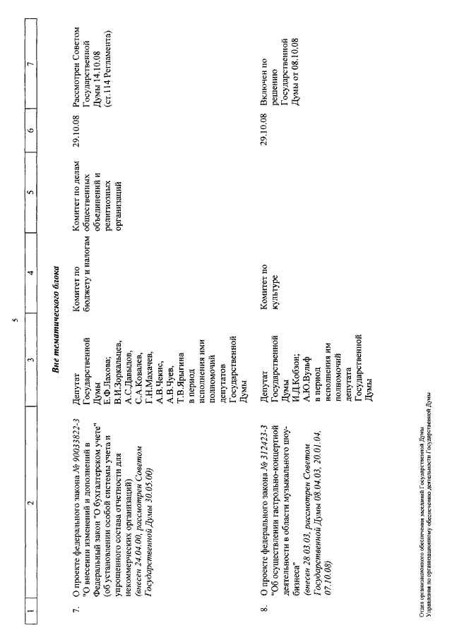 "О КАЛЕНДАРЕ РАССМОТРЕНИЯ ВОПРОСОВ ГОСУДАРСТВЕННОЙ ДУМОЙ С 29 ОКТЯБРЯ ПО 21 НОЯБРЯ 2008 ГОДА"