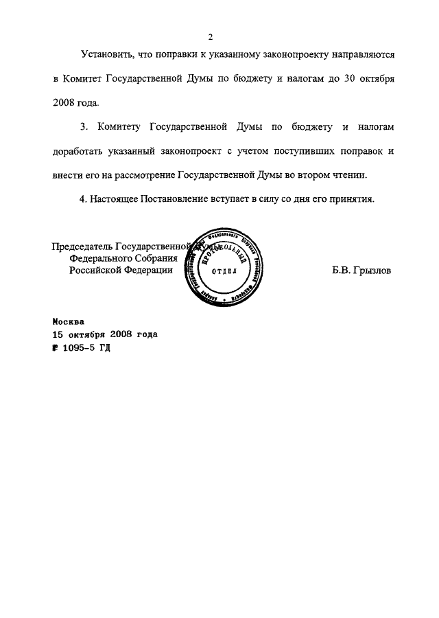 ПОСТАНОВЛЕНИЕ ГД ФС РФ от 15.10.2008 N 1095-5 ГД