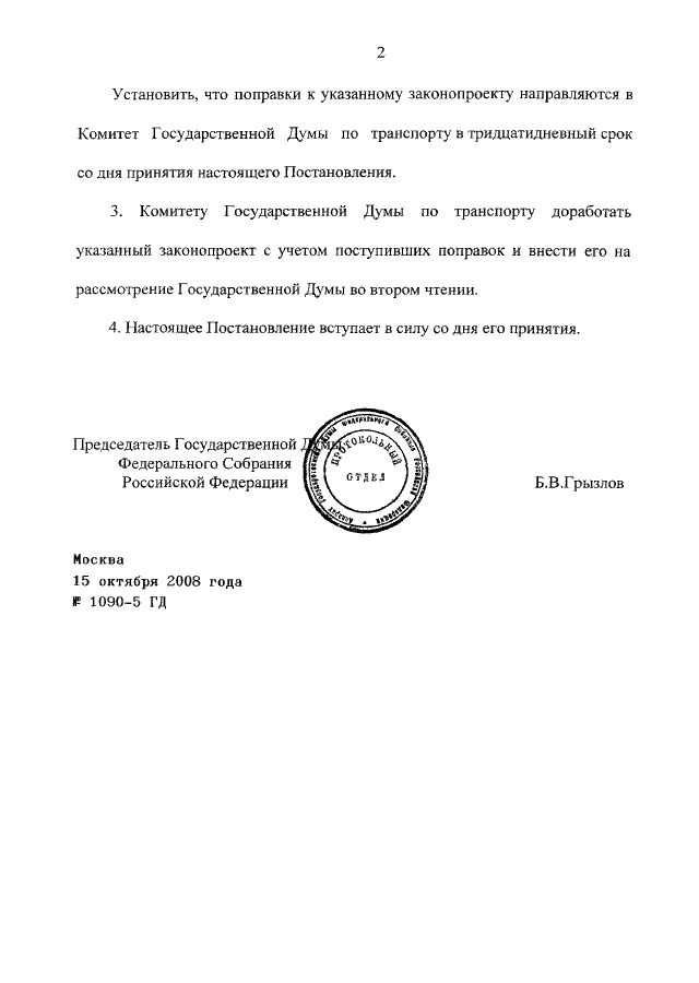 ПОСТАНОВЛЕНИЕ ГД ФС РФ от 15.10.2008 N 1090-5 ГД