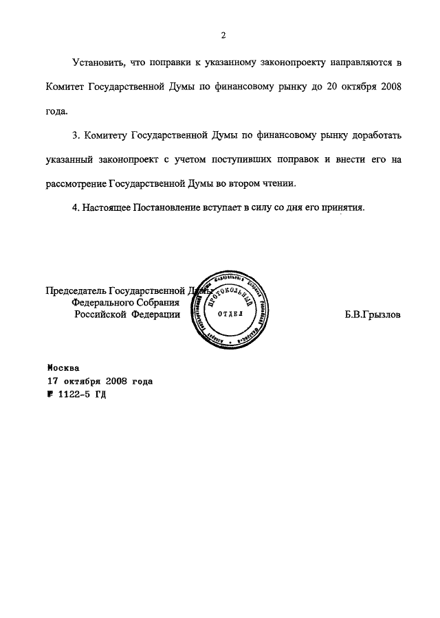 ПОСТАНОВЛЕНИЕ ГД ФС РФ от 17.10.2008 N 1122-5 ГД
