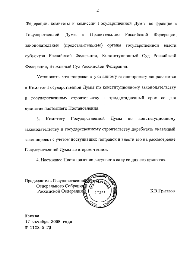 ПОСТАНОВЛЕНИЕ ГД ФС РФ от 17.10.2008 N 1128-5 ГД