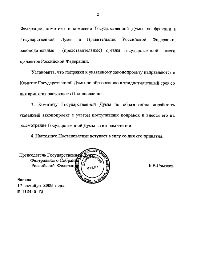 ПОСТАНОВЛЕНИЕ ГД ФС РФ от 17.10.2008 N 1124-5 ГД