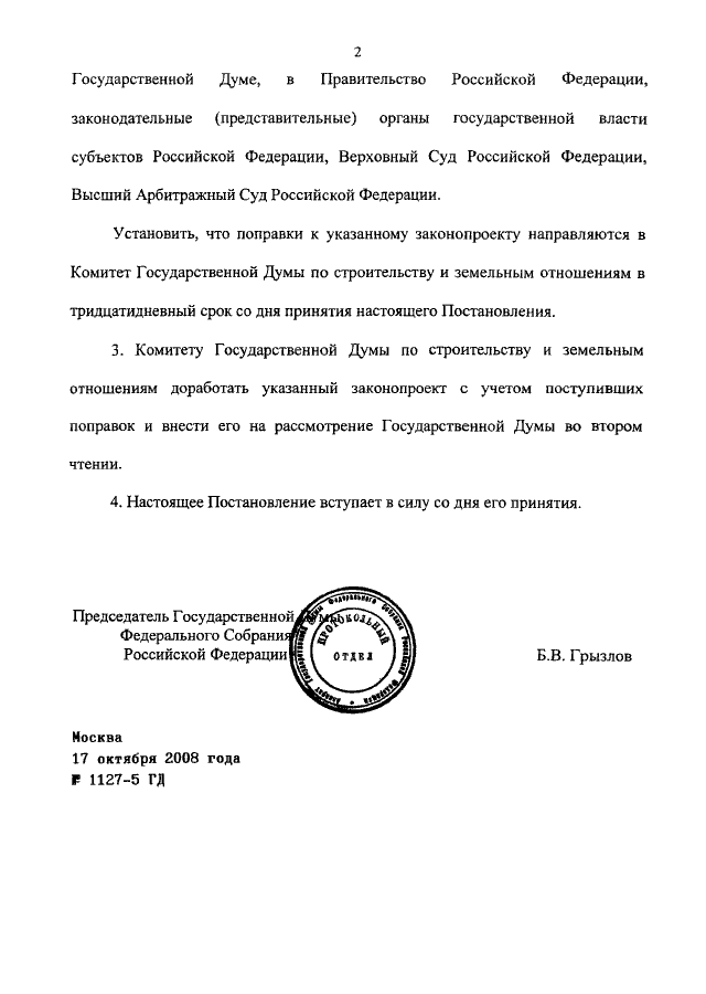 ПОСТАНОВЛЕНИЕ ГД ФС РФ от 17.10.2008 N 1127-5 ГД