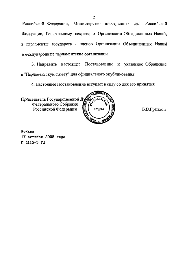ПОСТАНОВЛЕНИЕ ГД ФС РФ от 17.10.2008 N 1115-5 ГД