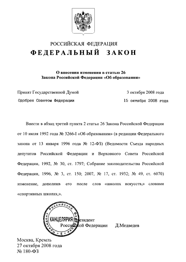 ФЕДЕРАЛЬНЫЙ ЗАКОН от 27.10.2008 N 180-ФЗ