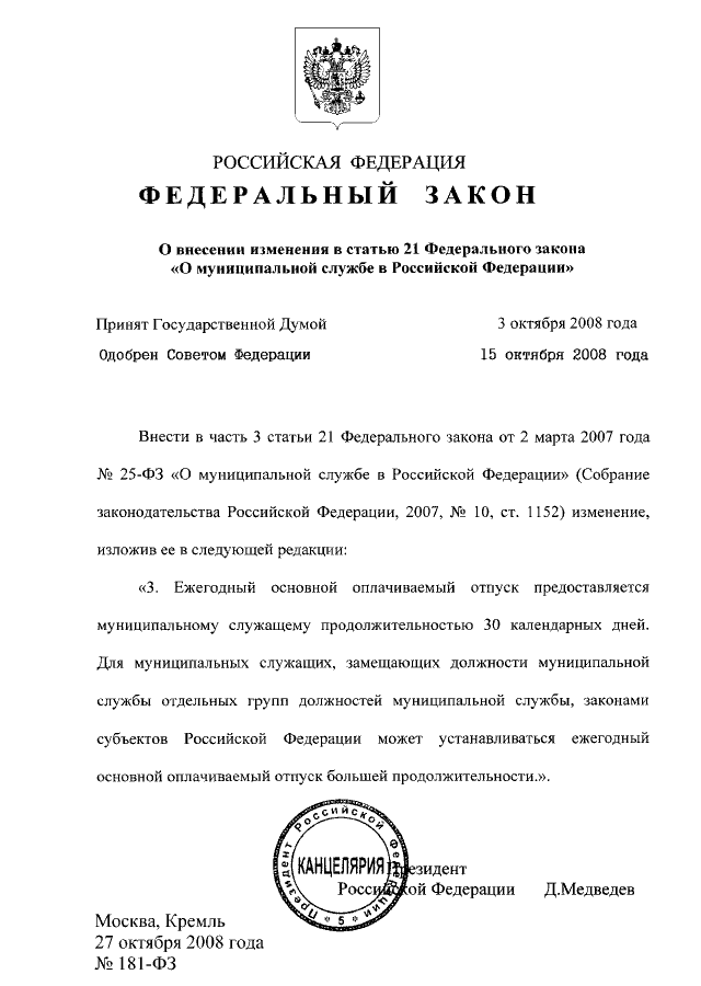 ФЕДЕРАЛЬНЫЙ ЗАКОН от 27.10.2008 N 181-ФЗ