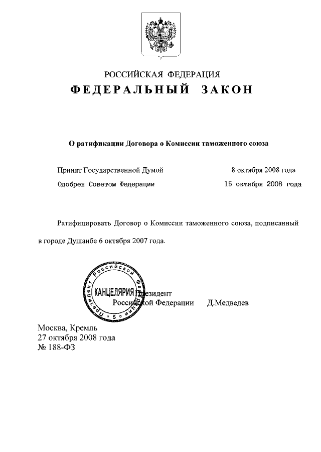 ФЕДЕРАЛЬНЫЙ ЗАКОН от 27.10.2008 N 188-ФЗ