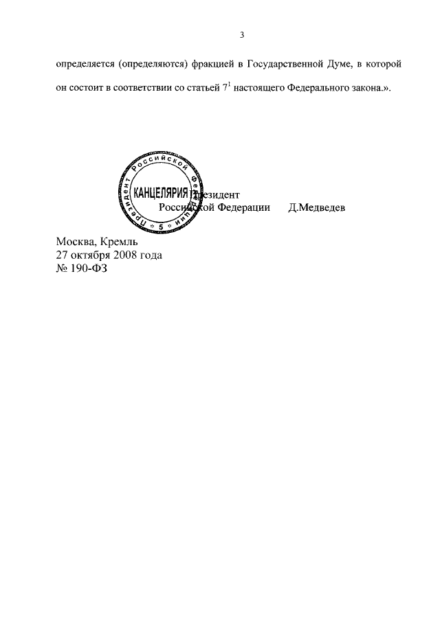 ФЕДЕРАЛЬНЫЙ ЗАКОН от 27.10.2008 N 190-ФЗ