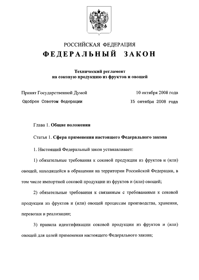 "ТЕХНИЧЕСКИЙ РЕГЛАМЕНТ НА СОКОВУЮ ПРОДУКЦИЮ ИЗ ФРУКТОВ И ОВОЩЕЙ"