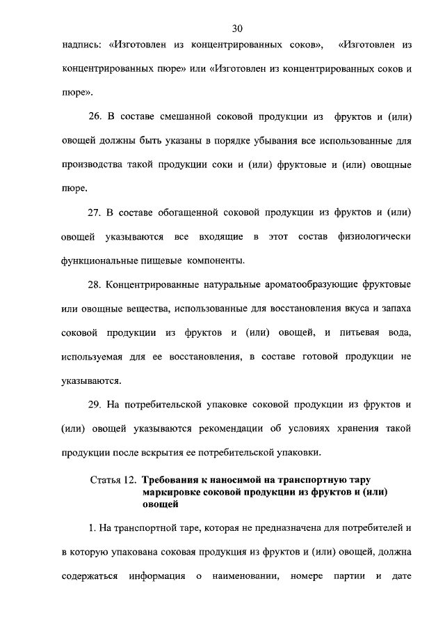 "ТЕХНИЧЕСКИЙ РЕГЛАМЕНТ НА СОКОВУЮ ПРОДУКЦИЮ ИЗ ФРУКТОВ И ОВОЩЕЙ"