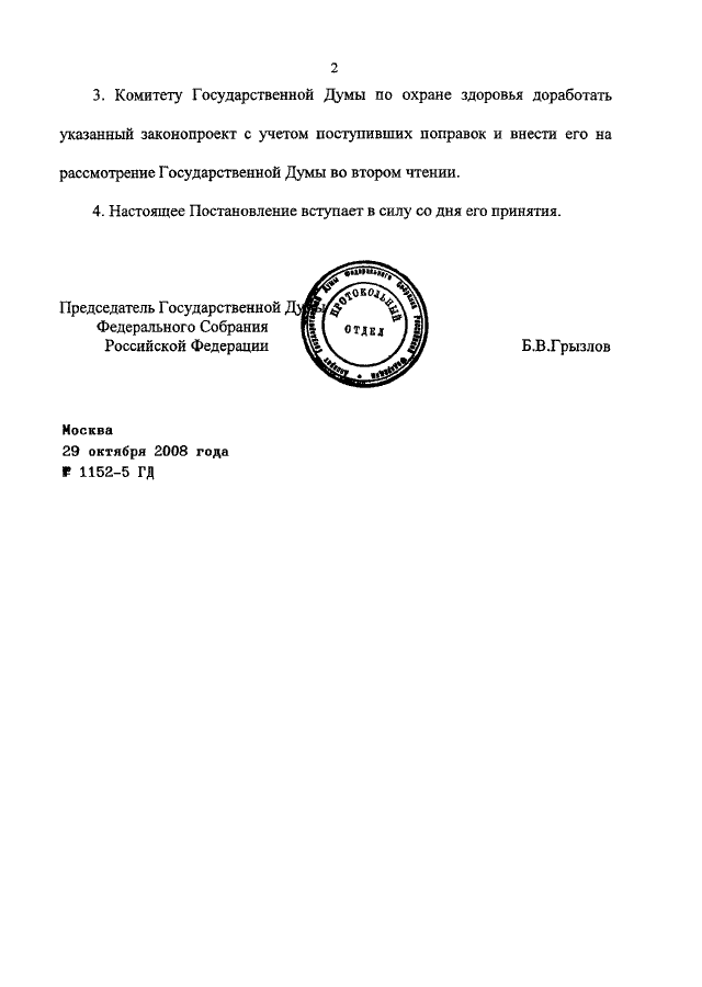 ПОСТАНОВЛЕНИЕ ГД ФС РФ от 29.10.2008 N 1152-5 ГД