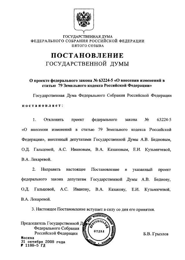 ПОСТАНОВЛЕНИЕ ГД ФС РФ от 31.10.2008 N 1188-5 ГД