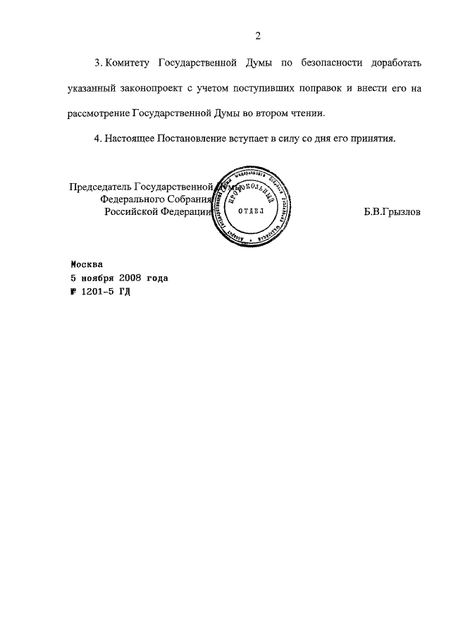 ПОСТАНОВЛЕНИЕ ГД ФС РФ от 05.11.2008 N 1201-5 ГД