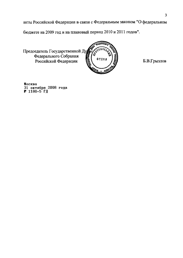 ПОСТАНОВЛЕНИЕ ГД ФС РФ от 31.10.2008 N 1180-5 ГД
