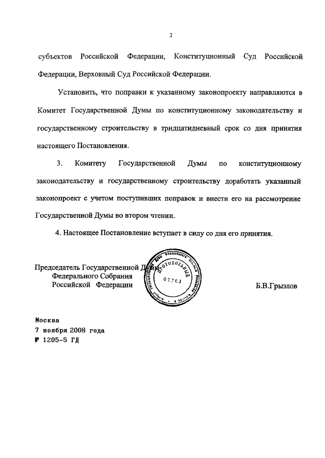 ПОСТАНОВЛЕНИЕ ГД ФС РФ от 07.11.2008 N 1205-5 ГД