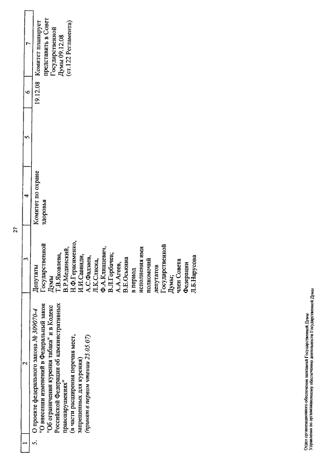 "О КАЛЕНДАРЕ РАССМОТРЕНИЯ ВОПРОСОВ ГОСУДАРСТВЕННОЙ ДУМОЙ С 3 ПО 26 ДЕКАБРЯ 2008 ГОДА"