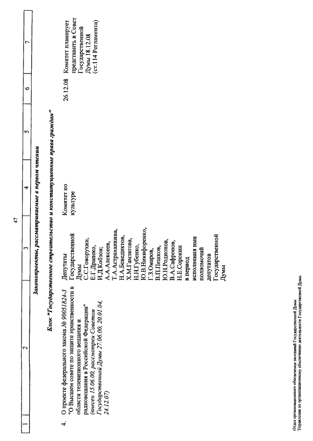 "О КАЛЕНДАРЕ РАССМОТРЕНИЯ ВОПРОСОВ ГОСУДАРСТВЕННОЙ ДУМОЙ С 3 ПО 26 ДЕКАБРЯ 2008 ГОДА"
