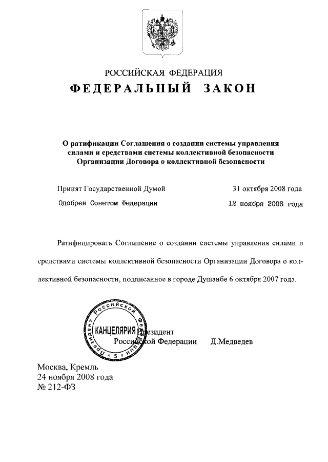 ФЕДЕРАЛЬНЫЙ ЗАКОН от 24.11.2008 N 212-ФЗ