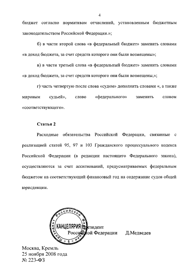 ФЕДЕРАЛЬНЫЙ ЗАКОН от 25.11.2008 N 223-ФЗ