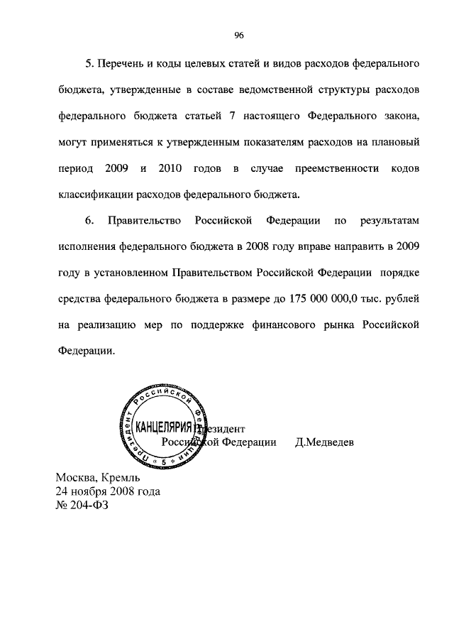 ФЕДЕРАЛЬНЫЙ ЗАКОН от 24.11.2008 N 204-ФЗ