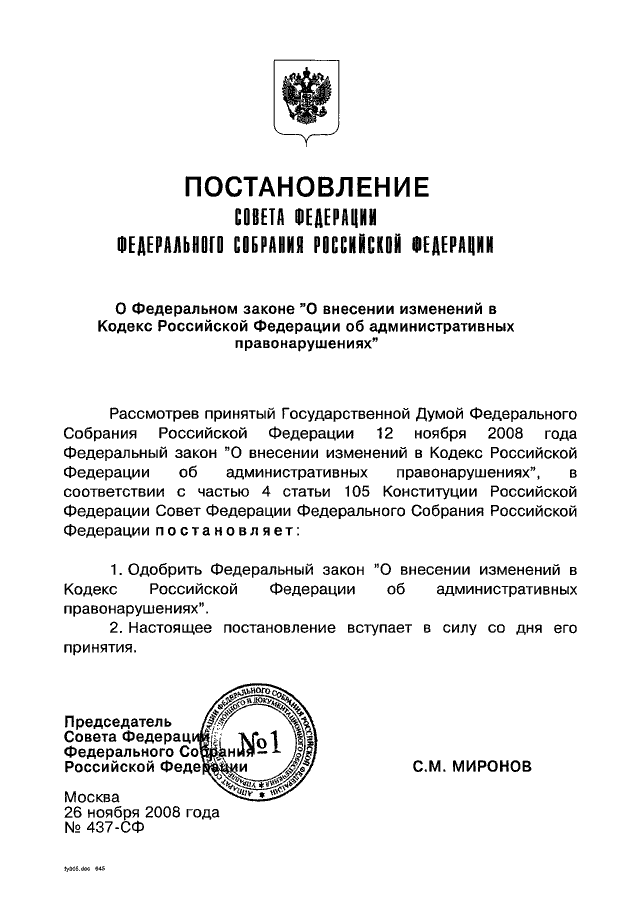 ПОСТАНОВЛЕНИЕ СФ ФС РФ от 26.11.2008 N 437-СФ